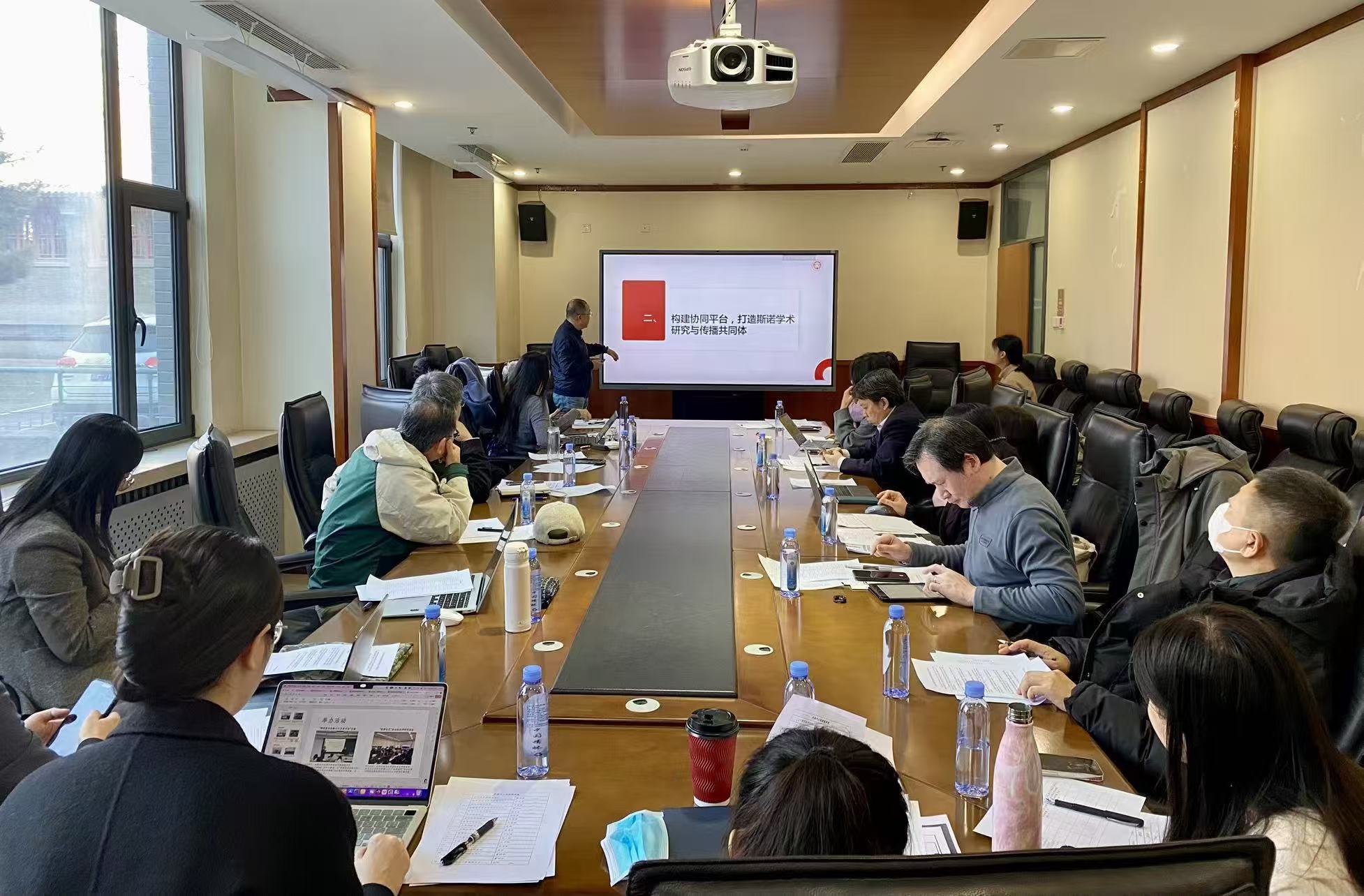 在工作汇报环节,18 家研究中心的负责人或其代表依次发言,围绕 "中心机构管理"" 科研活动开展 ""社会服务实践"" 学术成果产出 "及"2026 年工作计划 " 五大核心板块展开汇报交流。2025 年以来,各中心在团队建设方面稳步推进,构建了结构合理、协作高效的科研梯队;在学术交流领域成果丰硕,成功主办或协办多场高水平国内国际会议,多位学者应邀参与重要学术研讨并作大会主旨发言;在政策咨询与社会服务方面主动作为,提交的多项政策咨询建议获得被才纳;在学术产出上亮点纷呈,发表了一批高质量学术论文,出版了多部具有影响力的著作与刊物,同时顺利推进多项各级各类课题研究。汇报中,各机构负责人也分享了工作开展过程中面临的挑战,并结合学科发展趋势与自身优势,明确了 2026 年在深化特色研究、拓展合作网络、培育青年人才等方面的重点工作方向。