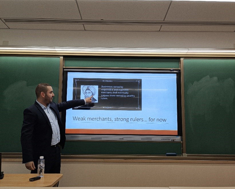 2019年10月22日下午,牛津大学圣安东尼学院海湾与阿拉伯半岛研究论坛委员会副主席阿卜杜勒·哈米兹亚(Adel Hamaizia)到访北京大学国际关系学院,并就“‘阿拉伯之春’后中东北非国家的政治经济改革”一题作专题报告。北京大学国际关系学院亚非研究所副教授、北京大学区域与国别研究院副院长王锁劳主持讨论,国际关系学院国际政治专业2019级博士生参与此次活动。