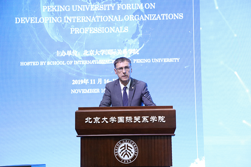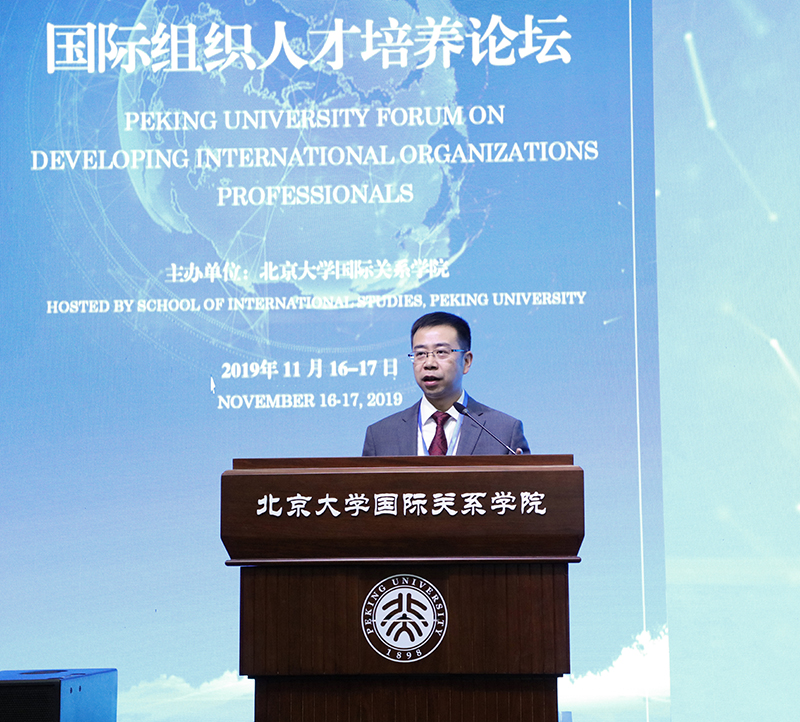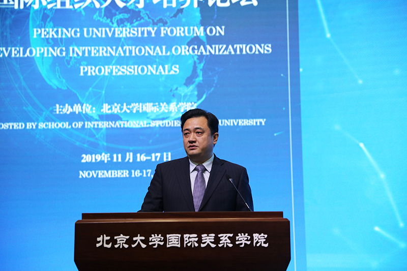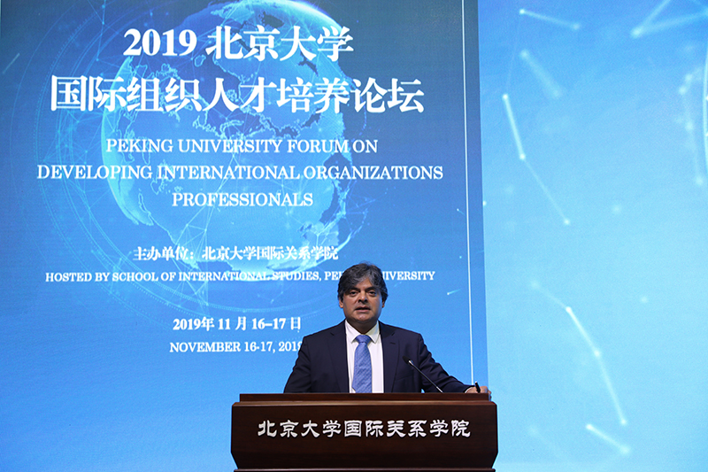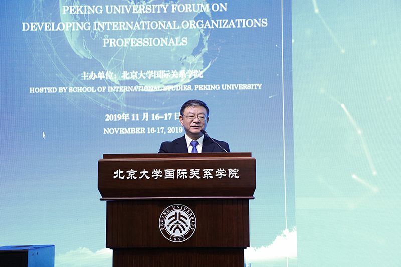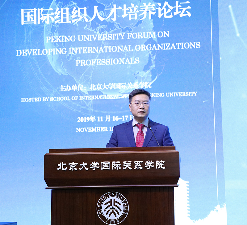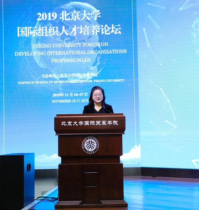 2019年11月16日,由北京大学国际关系学院主办的北京大学国际组织人才培养论坛在初冬的燕园隆重开幕。本次论坛是在当今世界面临百年未有之大变局、世界形势的不确定性和不稳定性明显上升、全球治理处于历史十字路口、中国作用备受瞩目的大背景下举行的。来自联合国驻华机构、亚投行等多个国际组织和中共中央组织部、外交部、发改委等多个中国党和政府部门的资深官员及30多所开展国际组织人才培养工作的中国高校的代表相聚北大,围绕全球治理的走向和国际组织人才培养的重大问题展开深入研讨。北京大学副校长王博、文化部原部长、北京大学国际关系学院院友会会长蔡武、北京大学国际关系学院院长唐士其先后在开幕式上致辞。开幕式由北京大学国际关系学院党委书记虎翼雄主持。论坛吸引了首都20多所高校的300余名师生参会。