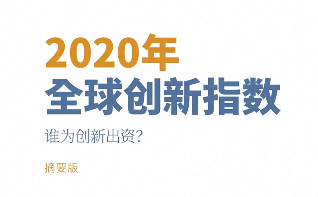 备受中国各界关注的GII 2020 中文版今天终于新鲜出炉。和往年一样,GII中文版为摘要版,精选了原版报告与中国相关的前言、序言、主要研究结论和排名、科技集群排名以及中国国家概况等内容,以飧读者。