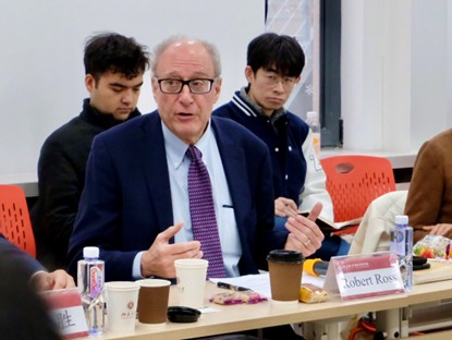 陆伯彬教授从分析特朗普本人的特点出发,预测了特朗普新任期的政策特征。他在演讲中强调,美国当前的主要担忧是,中国经济和科技迅速发展会对美国的军事和经济领导地位构成挑战。他认为特朗普在竞选中的承诺往往出于选举利益,而实际的政策依旧具有高度不确定性。在特朗普“美国优先”的立场下,美国可能会减少与菲律宾、韩国等国的军事合作;而相应地,各国也可能由于美国政策存在高度不确定性,调整与中国的外交关系,大国博弈下的国际关系整体会趋于复杂多变。Robert Ross教授将特朗普的顾问分为忠诚派和富商两类,其中富商被特朗普认为是真正懂经济的人,埃隆·马斯克是其中的代表,他们参与国家经济治理,更可能在特朗普的对外经济决策中发挥影响。