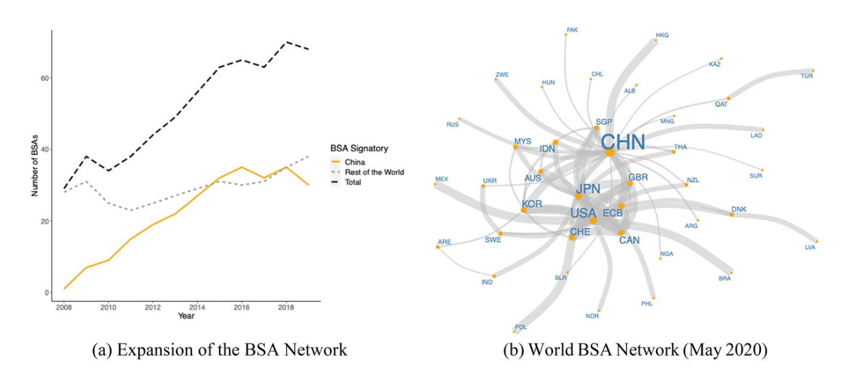 该研究聚焦于2008年以来中国构建的双边货币互换协议全球网络,系统考察了这一经济互惠安排在国家间关系维度产生的影响。双边互换协议为签约方中央银行在金融动荡时期提供预先授权的流动性支持,构成一种制度化的金融风险保险机制。基于经济联系外溢至政治关系的国际政治经济学经典理论,研究提出,中国的互换协议可能改变伙伴国家的激励结构,进而增强其对华外交亲近性。尤为重要的是,论文着重分析中国互换协议伙伴国的高度异质性,修正和拓展了经典的“赫希曼效应”理论——即经济依存带来政治趋近的因果机制,理论化该效应发挥作用的条件,从而预测这一效应如何随伙伴国的关键特征不同而变化。