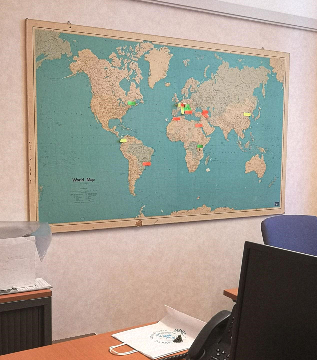 当我们问及采取了怎样的保护措施,他笑着对我们说,“家人朋友们都拿了一大堆防护用品给我,把书包塞得鼓鼓的。”据欧阳瑞泽回忆,入职当天办公室里同事的一句话让他印象深刻。同事说,“我们这里终于迎接到了来自东方的实习生,你是第一位”!值得一提的是,办公室里有一项延续已久的传统,即初到的实习生在世界地图上标注出自己的姓名和国籍。待欧阳瑞泽走近墙面才看清,地图上位于欧洲区域的标签已经密密麻麻地叠满了好几层,而辽阔的东方大地却空荡如也。于是他满心自豪地贴上了一张专属标签,一张诉说着“我来自中国”的标签。