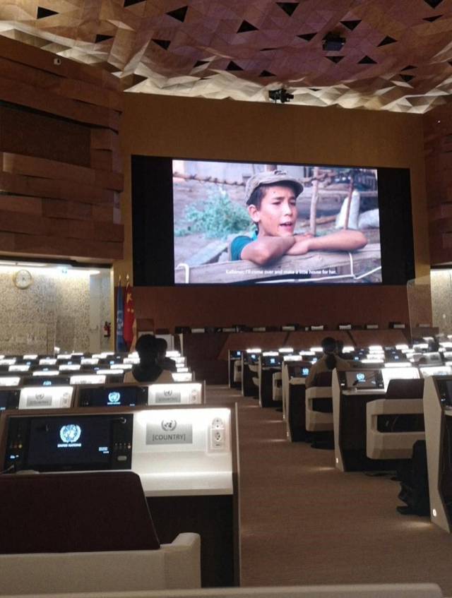 (在万国宫观看中国新疆电影)
