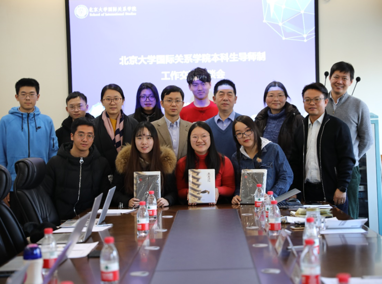 2018年12月27日下午13:30,国际关系学院本科生导师制工作交流座谈会在国关楼C座105会议室举行。座谈会立足于学院全方位育人的指导理念,旨在打通教学与学生工作领域,通过听取教师代表、学生代表对学院本科生导师制的体会和建议,探讨在今后的工作中如何进一步完善制度,使学院老师、同学从中获益。北京大学教务部副部长刘建波、国际关系学院副院长归泳涛、副教授钱雪梅、助理教授许亮和2016-2018级本科生学生代表参加座谈会。会议由国际关系学院党委副书记祝诣博主持。