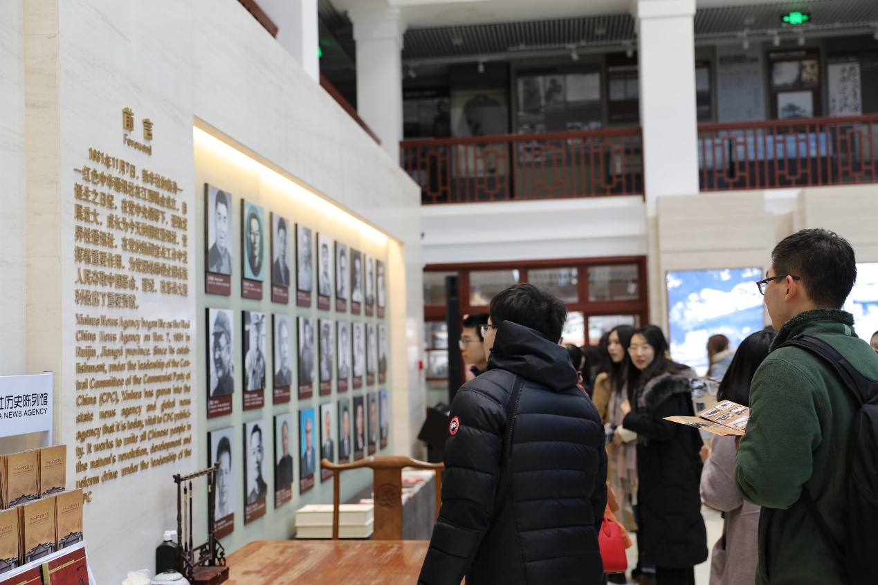 同学们在历史陈列馆了解了新华社的发展历史与工作内容,同时对中共党史、中国新闻史有了更多认识。新华社前身是1931年在江西瑞金成立的红色中华通讯社,是中国共产党最早的新闻机构,跟随党中央转战各地,1937年更名为新华通讯社;20世纪50年代中期,新华社开始建设世界性通讯社,力求“让全世界都能听到我们的声音”。目前新华社主要提供文字新闻、多媒体报道、经济信息等内容,同时使用英文、法文、西班牙文、俄文、阿拉伯文和葡萄牙文发稿,下设《参考消息》、《经济参考报》、《新华每日电讯》、《瞭望》周刊、《半月谈》等报刊杂志。