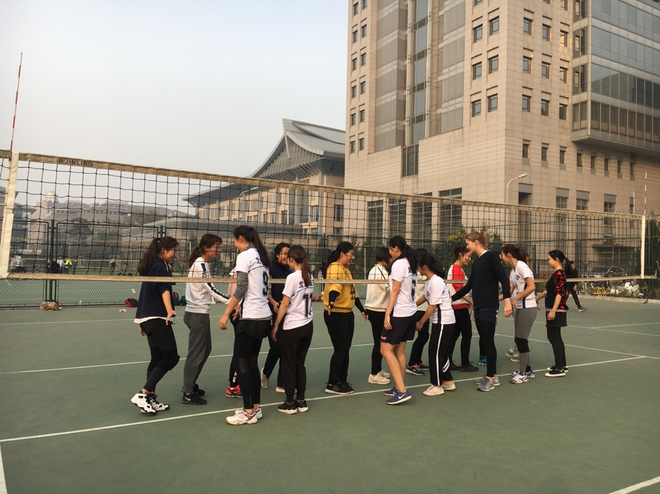 上周赢得了新生杯的第一场胜利后,国关女排精神大振。同时我们也没有忘记我们仍然要保持最佳状态,确保在接下来的比赛中取得胜利,顺利进入八强。从我方资深情报人员得到的消息中,我们发现生科实力并不弱,不仅有可以扣球的副攻,新生的接球也不差,实力较为均衡。这意味着,对方没有一个较弱的突破点。因此,我方也不敢掉以轻心。虽然那天天气较差,雾霾很严重,但是队员在比赛开始的一小时前就开始了热身,并且练习转轮,积极备战。