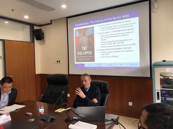 卡赞斯坦教授以希腊神话中可以随意改变体型并具有先知的海神普罗透斯(Proteus)开篇,引出对多变的权力的讨论。2008年席卷全球的金融危机,让他开始思索除了金融系统本身原因以外,是否还有更深层的因素致其发生,以及面对危机时有能力解决问题的政府机制。传统的国际关系研究多关注于先验的、可预测的、确定的行为主体和事件,而且多将政府作为行为主体。卡赞斯坦教授新书则着眼于未知或未来的、不可预期的(unexpected)、偶然(accidental)因素以及更为多元多变的行为主体,提出不可预测性或许才是当今时代的新“常态”(Unpredictability may be the new normal.),有诸多意料之外的事件作为推手不断改变着历史轨迹。忽略这些“不可预期的”(the unexpected)往往会造成误判,比如特朗普当选美国总统就是一次改变不少国际关系学者看法的事件。权力(power)的概念正在被不断延展,比如软实力,这是国际关系研究的新趋势。权力也比历史上任何时期都更为分散在不同行为主体手中。各种行为主体都可能拥有多变权力(protean power),比如拥有垄断技术的巨型跨国公司,又如过去几年移民和难民对欧洲政治生态的重塑(reshape)。因此,卡赞斯坦教授的讨论将权力分成两种形式,即传统意义上的可控权力(control power),以及多变权力。他指出传统研究范式和模型追求确定性,所以逐步将不确定性(uncertainty)剔除或把它等同于风险(risk),这就造成了国际关系研究中的局限性,我们应将风险和不确定性区别对待。他以矩阵的形式呈现了基于国际形势特点和行为主体的过往经验,行为主体在不确定性(uncertainty)和风险(risk)不同组合下采取的否决(refusal)、肯定(affirmation)、即兴(improvisational)或创新(innovative)的回应策略。卡赞斯坦教授以美国政府代表的美国国家(the United States)作为行为主体的可控权力,和美国社会(America)作为主体的多变权力为例,指出可控权力和多变权力共存(co-exist),而且相互纠缠(entangled),共同演化(co-evolve)。讲座过程中,卡赞斯坦教授还梳理了罗伯特·达尔(Robert Alan Dahl)、彼得·巴克拉克(Peter Bachrach)、莫顿·巴拉茨(Morton Baratz)、伊戈尔·卢克斯(Igor Lukes)、约瑟夫·奈(Joseph S. Nye,Jr.)、米歇尔·福柯(Michel Foucault)以及亚历山大·温特(Alexander Wendt)等学者从不同侧面对权力的研究和阐释。在提问环节,我院师生从多变权力的行为主体、多边权力与建构主义的关系以及如何认知与获得多变权力等方面进行提问,同卡赞斯坦教授开展了一场活跃的学术讨论。