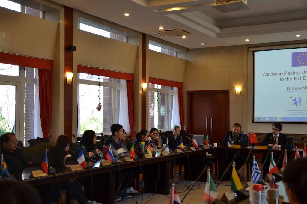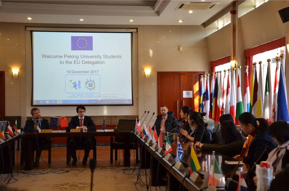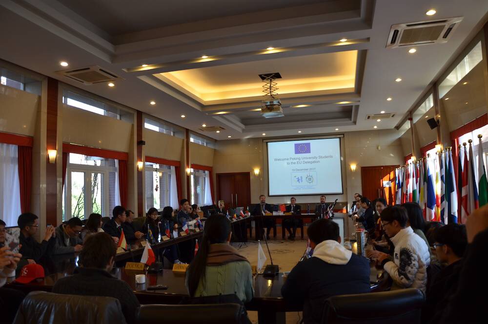 12月19日,在北京大学国际关系学院与经济学院外联部的带领下,来自各个院系的共30余名同学,来到位于东直门外大街15号的欧盟使馆进行参访。