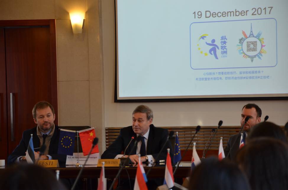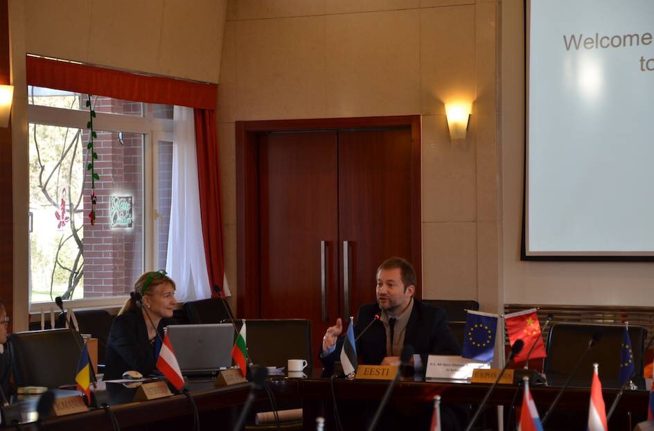 同学们受到了欧盟驻华使团文化参赞马庆先生(Marcin Grabiec)的热情接待。大家入座后,由国关的学生代表简单了介绍了一下参访同学的大致情况,欧盟驻华大使史伟先生(Hans Dietmar Schweisgut)对我们的到来表示热烈欢迎,并为我们介绍了今天活动的流程。他指出,了解中国是复杂而又艰巨的任务,北京大学学生的来访对于双方来讲都是一次可以增进对彼此了解的良机。