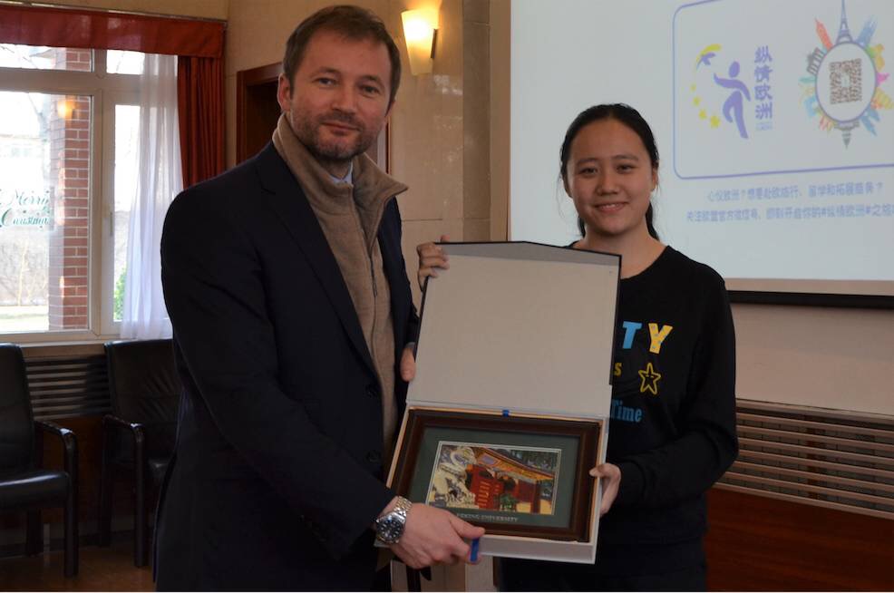 在政治方面,Asad Beg先生分析了英国脱欧与美国联邦制,并着重强调了欧盟在许多领域的不同之处,指出尽管欧盟尚不完全成熟,但是会进一步完善成员国间彼此的关系;经贸上,Madeleine Kihlberg女士对欧盟的经贸发展现状和现在的经济政策做了介绍与分析,并阐述了欧盟与中国在经济上的协商合作以及双方投资变化背后的原因;在文化教育方面,Marcin Grabiec先生指出欧盟使馆的日常工作就是使中国进一步了解欧洲文化,强调中欧文化交流的重要性,并进一步从旅游、出国留学、音乐、影视、文学等方面阐述了欧洲的目前情况、中欧的差异以及在中国即将举办的活动;在纵情欧洲活动方面,William Fingleton先生指出,随着中欧双方的留学生人数的增多,纵情欧洲活动将更好地为青年们提供了解欧洲的平台。他指出,此活动会开展相关的大学合作项目,北大是其中重要的一员。