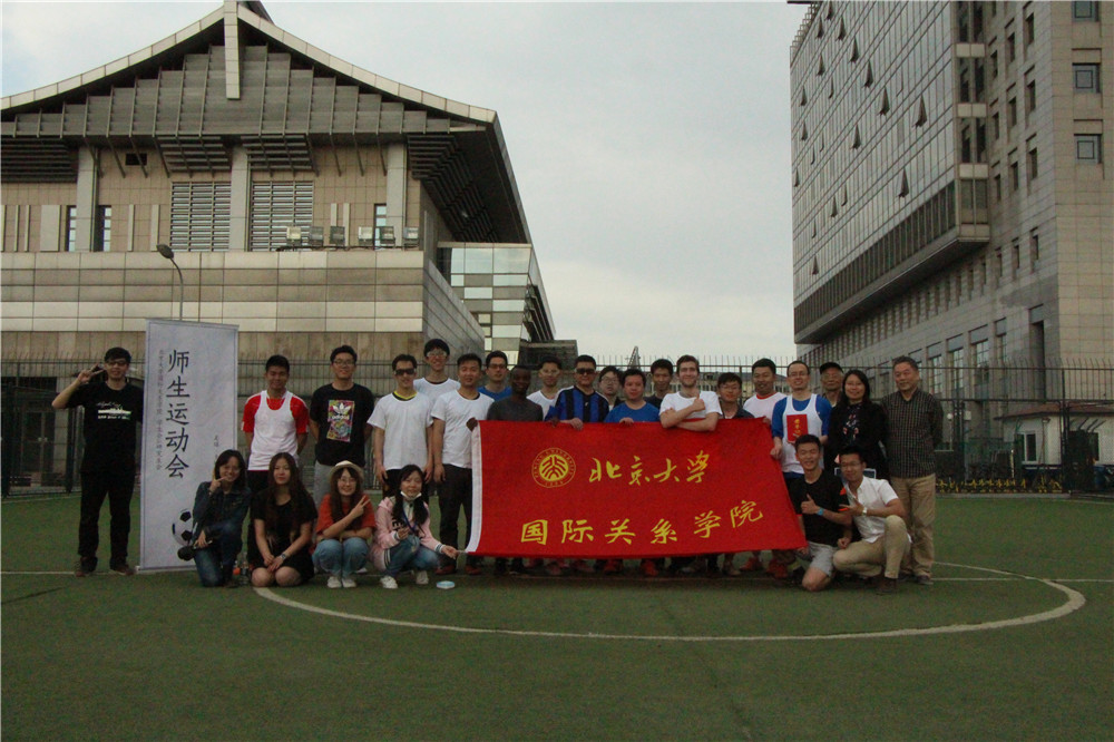 2017年4月14号下午,国际关系学院的师生们聚集在五四足球场展开师生足球赛,老师和同学们分为混编的两支队伍进行7V7足球赛,在比赛正式开始之前,两支队伍进行了趣味点球大战,点球大战之后红队暂时领先。