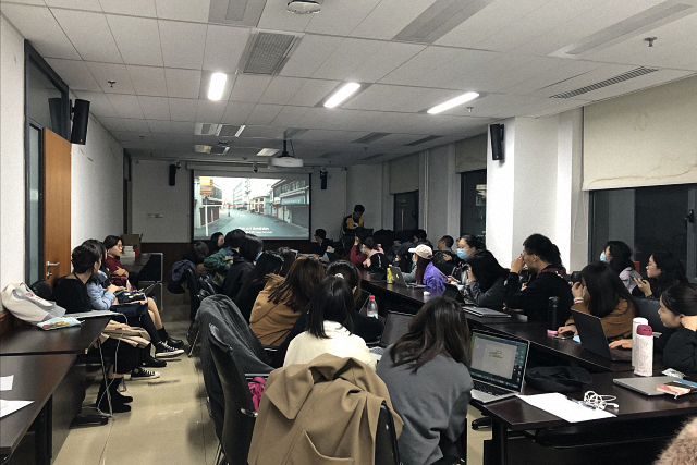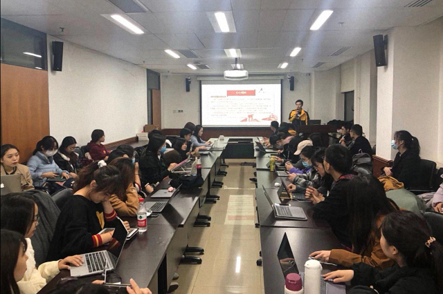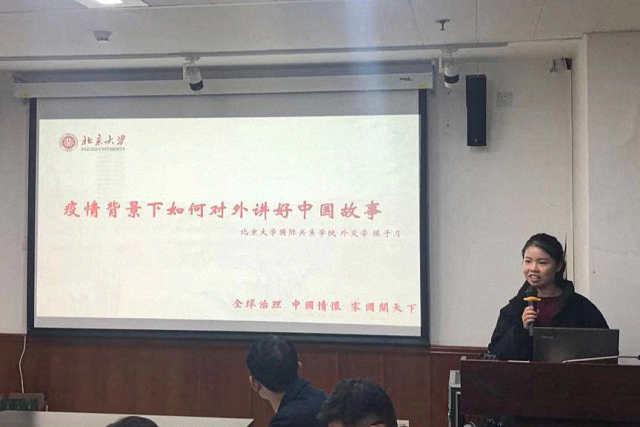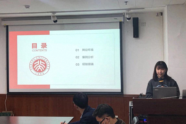观影结束后,新传孙薇同学和国关陈子月同学结合自己的专业知识与亲身经历进行了主题分享,从不同角度阐释“讲好中国抗疫故事,传递中国真实声音”。孙薇同学从平层叙事、平衡叙事、客观真实纪录、媒介赋能四个角度分析了CGTN《武汉战疫纪》海外传播取得成功的原因,并表示应当充分吸收各类讲述中国抗疫故事的成功经验,塑造真实的武汉抗疫形象,扭转中国在国际舆论场中的态势。陈子月同学认为传递好中国声音,需要建立故事维度的内容叙事观、话语维度的受众叙事观和语境维度的共享叙事观,客观纪录疫情期间人民生活,充分展示中国的抗疫成果,以“小故事”助力“大外交”。