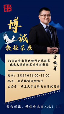 为响应习近平总书记“教师要成为大先生,做学生为学、为事、为人的典范”的号召,国际关系学院举办 “博诚教授茶座”。结合本科生导师制工作,每期邀请国际关系学院的教授学者,以茶座会的形式或带领同学们进行经典导读,或分享自己的学术经历与人生感悟,旨在引导同学们积极思考学习与人生。作为一名国关人,要懂自己、懂社会、懂中国、懂世界,让我们与于铁军教授相约博诚,畅谈学术与人生。