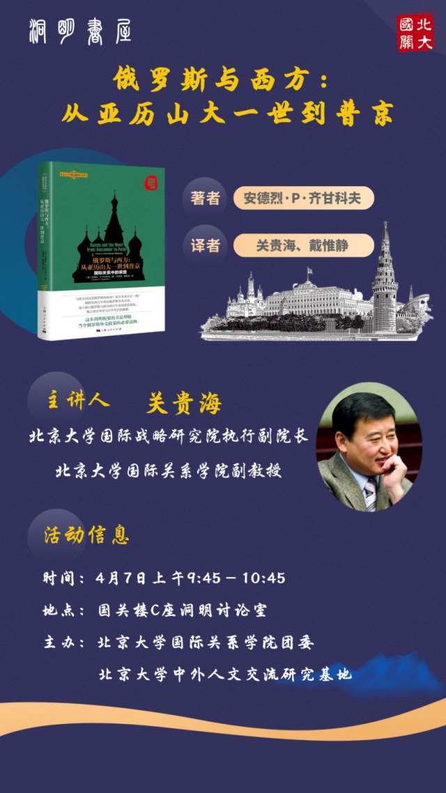 本期洞明书屋,由关贵海老师带来他的著作《俄罗斯与西方:从亚历山大一世到普京——国际关系中的荣誉》,与到场的老师和同学们一起进行交流探讨。