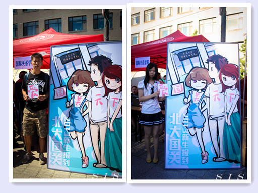 今年迎新现场的一大特色,是开展了“爱在国关,‘新’中有你”的新生留影项目。极具创新的新生留影大展板成为亮点,为新生留下初入燕园的第一张影像,这将成为新生初入燕园、初入国关留下的最美好回忆。手捧“爱”意,面带笑容,一幅幅清新的画面成为夏秋之交燕园最美的风景。朱善璐书记、王恩哥校长、叶静漪副书记先后来到我们的迎新摊位,朱善璐书记、王恩哥校长也参与到此次活动当中并合影留念。