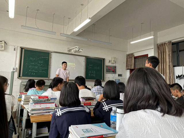 7月31日上午,实践团师生来到弥渡县第二完全中学,与弥渡二中的师生们进行了深入交流,弥渡县北大挂职副县长陈贵兵陪同交流。弥渡二中建校于1973年,是一所位于乡镇的县级公立中学,始终坚持“关注每一个学生发展”的办学思路,重视教师队伍建设、教育制度建设与办学条件改善。实践团的同学走上讲台,与弥渡二中的同学们分享高中学习经验与大学生活经历,通过组织同学们互动,拉近实践团与弥渡二中同学的距离,鼓励同学们坚定理想、努力学习,脚踏实地地步入大学门槛。弥渡二中的交流学习活动为实践团的同学提供了深入教学一线了解弥渡县教育现状的机会,在每日评议会上,同学们或分享与学生交流的感受,或与自己的家乡教育现状进行对比,深入思考弥渡教育现状。