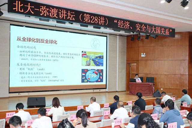 8月2日下午,弥渡县委、政府在县委党校报告厅举办了第28讲“北大—弥渡讲坛”,邀请北京大学国际关系学院副院长归泳涛作题为《经济、安全与大国关系》的主题讲座,弥渡县县委、县政府各部门负责人参与讲坛。归泳涛教授紧密结合时事,以详实生动的案例阐释经济全球化背景下经济与安全的关系,并以美国对华脱钩政策下美日中的关系演变为例阐释大国关系,进而提出对全球经济发展趋势及前景的预测。北大-弥渡讲坛是北京大学对弥渡县挂钩帮扶的项目之一,通过与北大教授近距离交流,弥渡县党员领导干部紧跟国家发展脚步,不断提高思想政治高度与理论修养水平,掀起了论脱贫谋发展的思想热潮。为扩大“北大——弥渡讲坛”实效,弥渡县依托在党(工)委和党总支两级党组织中开设的“书记论坛”,以各级党组织书记为主体,紧扣农村工作实际,延伸讲坛知识确定论坛主题,通过交流探讨推动“北大—弥渡讲坛”成果进基层,惠及基层党员群众,达到了加快乡村振兴战略步伐的目标。