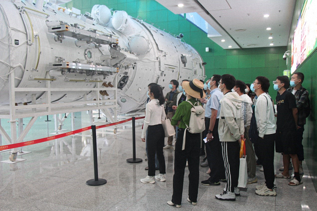 同学们在展教中心党总支书记郭小军的带领下参观了“天和核心舱”1:1结构验证件实物。“天和核心舱”是中国空间站“天宫”的组成部分,2021年4月29日随长征五号B遥二运载火箭在海南文昌发射升空。“天和核心舱”1:1结构验证件实物则在前期为“天和核心舱”的成功贡献了大量的实验验证。“天和核心舱”与1:1结构验证件实物是我国航天事业在党领导下不断发展壮大的生动写照,也是我国当下最高科技水平的璀璨结晶。