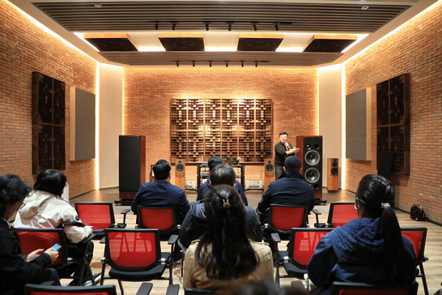 之后,老师和同学们参观了北京音乐产业园。作为乡镇企业的老旧厂区,近年来在黑庄户乡政府的疏解整治与改造提升后焕然一新。厂区在保留工业记忆的同时,开发拓展了音乐产业园的新功能。园区工作人员介绍了产业园的概况定位、发展历程与未来规划,并带领大家参观了沉浸式音乐体验中心、演艺中心、演播大厅、会议中心等场所。学院师生在学习了解基层经济建设与产业发展等相关知识的同时,还深入体验了atc Hi-Fi听音室、L-ACOUSTICS等先进的音乐硬件设施,在一堂生动的美育教育课中深入感受音乐魅力,体会中外文化交融之美。