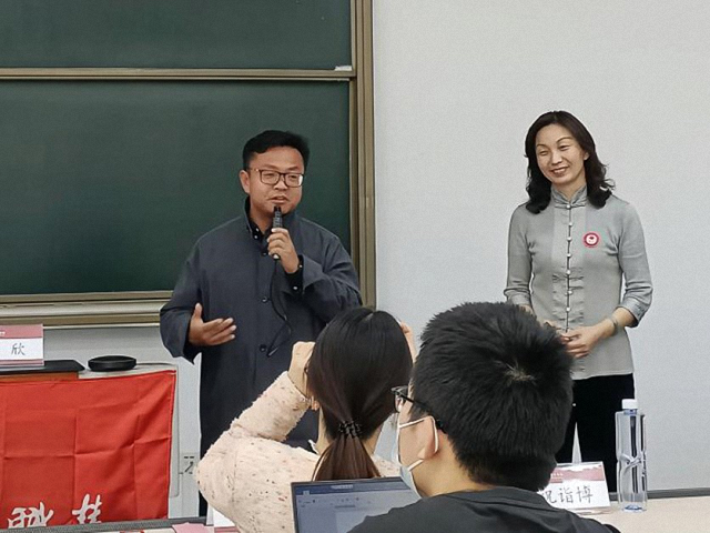 祝诣博首先对陈欣院友的到来表示欢迎,并向同学们介绍了她的职业经历,以及她所创建的职慧机构在公益事业和青年职业成长方面发挥的重要作用,激励各位党员同志向优秀院友学习,充分发挥先锋模范作用,积极参与公益志愿活动,提高服务意识。他表示,学院将进一步加强组织建设和对外联络,积极联动各方资源,将党团班活动与同学们的实际需求相结合,助力每一位同学成才成长。