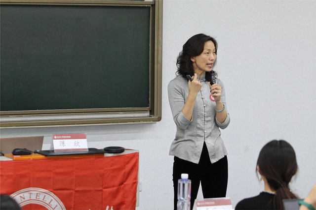 随后,陈欣以“表里如一”为主线开始了本次培训。她从面试官的角度引入“成功面试”概念,提出了“表、里、如、一”四字箴言,并依次从“表(表现)——了解面试”“里(经历)——真实过去”“如(假如)——深入探索”“一(一致)——动机匹配”四个方面向同学们阐述如何成功面试。