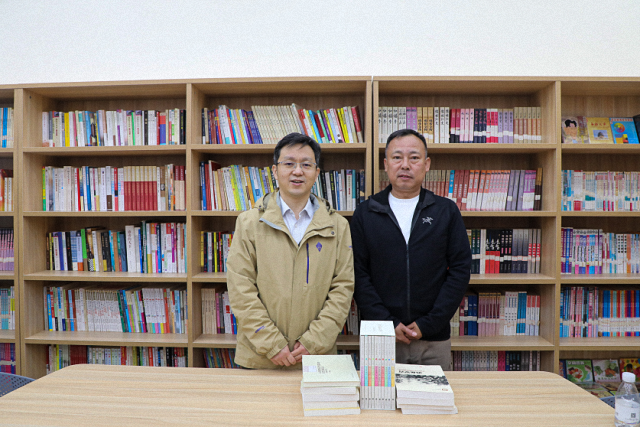 师生一行来到学院与小鲁店村共同建设的共享书屋,翻阅图书,了解书屋使用情况,并为共享书屋捐赠新的书籍。