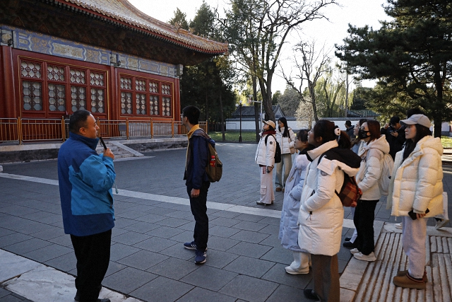 11月29日下午,“古都新韵 中轴寻遗”——“I-SISers”项目“北京中轴线”系列参访活动第二期顺利举办。北京大学国际关系学院党委副书记张昕扬,团委副书记蒋嘉琪带领15位中外学生前往北京市劳动人民文化宫和中山公园参访。大家认真聆听讲解老师关于太庙与社稷坛背后深厚文化内涵的系列讲述。