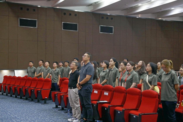 2025年8月22日上午,北京大学国际关系学院2025级本科生军训开营仪式在秋林报告厅顺利举行,国际关系学院院长唐士其,院党委副书记张昕扬,院团委常务副书记冯溢昕,以及2025级全体参训学生参加仪式,开营仪式由冯溢昕主持。