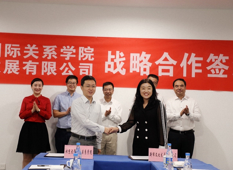 2019年9月25日,北京大学国际关系学院与新绎文化发展有限公司战略合作签约仪式在丝绸之路国际文化交流中心和平广场会议室举行。国际关系学院党委书记虎翼雄,副院长归泳涛,院长助理项佐涛,院友会金瑞;新奥集团高级副总裁、新绎控股党委书记李红杰,新绎控股副总裁、新绎文化总经理李晓菲,新绎文化副总经理、丝路中心总经理杨晓龙出席签约仪式。