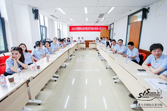 2023年5月27日,北京大学国际关系学院2003级本科院友入学20周年纪念活动成功举办。院友们从各地专程返校参加聚会,未到场院友通过视频线上参与,实现大家欢聚母校的心愿。院友们与同窗一起重温旧日点滴,畅谈人生感悟,互致祝福。学院院长唐士其,教授潘维、王勇、朱文莉,院长助理、团委书记张昕扬,院友办副主任金瑞出席活动。活动由2003级本科班长陈光主持。