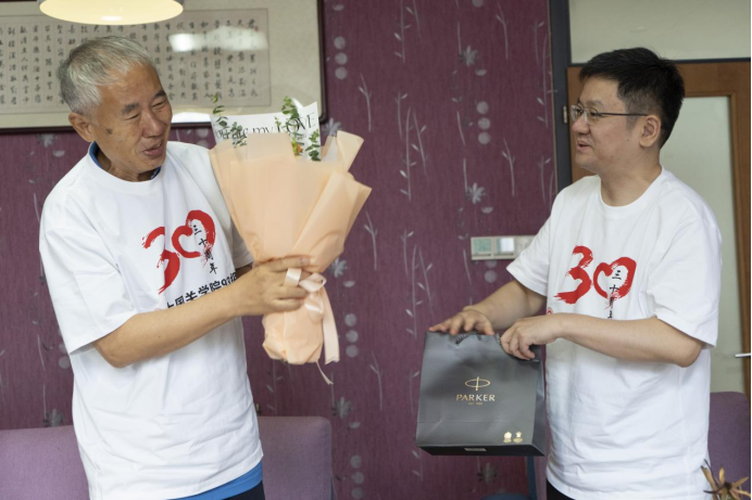 座谈会上播放了《青春无问东西,岁月自成芳华》纪念短片,记录我们的青葱岁月,回顾我们的韶光年华。 1993级本科班院友向学院赠送纪念礼品和鲜花,表达真挚的感恩之情并祝教师节快乐!