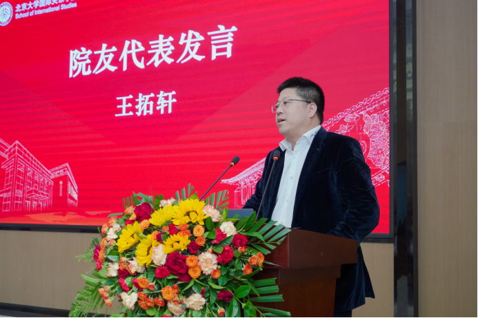 院友代表王拓轩在发言中感谢院友会提供的交流平台以及资深教授带来的精彩学术分享。他表示,国关学院团结精干的氛围、简单平等的师生关系、教师对学生发自内心的保护等优良传统,对其日后的工作生活产生了长久深远的影响。作为院友,他愿与各位院友共同努力,维护好院友会这一良好沟通平台,推动资源共享,促进协同发展。