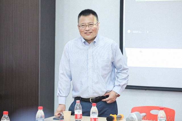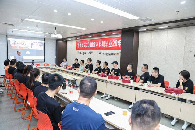 活动在学院地下大间举行,这间教室是三年前在2000级同学共同捐资下得以修缮改造。教室的墙面挂满了2000级同学当年求学时的照片,和部分院友出版的新书,营造出满满的青春记忆与学术氛围。院长唐士其着重从学科建设、学生培养与科研成果三个方面向院友们介绍了国际关系学院近来的发展成果与未来规划,并向院友们对学院始终的关注与支持表达感谢。