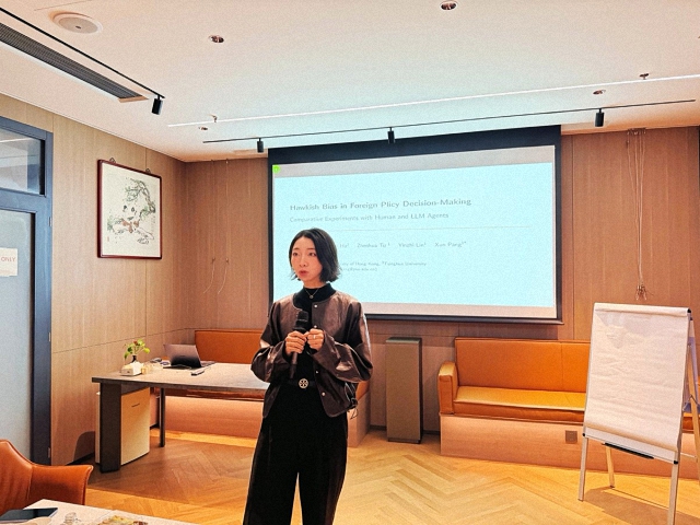 在主题分享环节,庞珣教授深入剖析了人工智能在国际关系决策中的应用与风险。她指出,AI技术已从“未来议题”转变为“进行时”,多国政府部门已在实践中部署AI系统。庞教授重点分享了她领导的跨学科团队最新研究成果,通过构建3973个基于大语言模型的智能体,系统研究了AI在复杂决策中可能产生的认知偏差。研究发现,LLM智能体展现出的偏差模式与人类存在显著差异,这为AI在政治决策中的应用敲响了警钟。