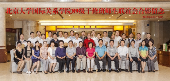 经过近两年的筹备,2013年6月10至6月14日,北京大学国际关系学院89级干部班师生终于在合肥相聚了!原北京大学国际关系学院党委副书记、89级干部班班主任王其芬老师出席了联谊会并讲了话,北京大学国际关系学院李茂春老师为我们进行了精彩的讲座。全班有34名同学携家属18人参加了联谊活动。北大国关院院友会安徽分会设宴进行了款待,原政协安徽省委员会常务副主席秦德文、北大国关院友会安徽分会会长蔡木森、副会长常传兴等出席了当天的欢迎晚宴。